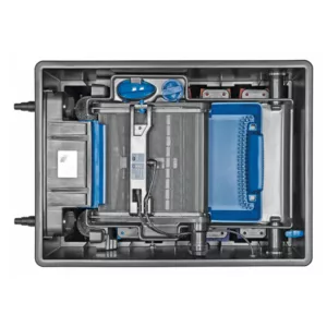 The Biotec Screenmatic 40000 is a premium gravity filter by OASE perfect for ponds 10000 litres – 40000 litres. For ponds without fish, this filter can handle up to 40000L. For ponds with average fish stock such as goldfish, 20000L. And for ponds with koi, 10000L.